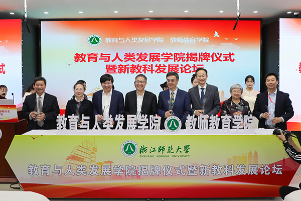 随后,李鲁校长和与会嘉宾共同为浙江师范大学教育与人类发展学院揭牌。