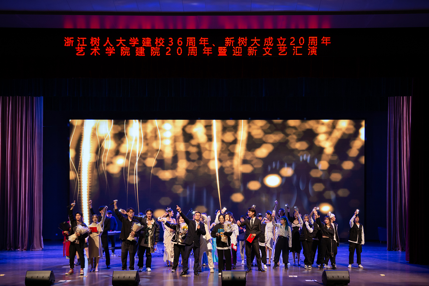 文艺汇演节目丰富多彩,别具特色,现场气氛火热。学院服装社和模特队带来的服装走秀《星空》将梵高主要作品的元素融入到了服装设计之中,向艺术大师梵高致敬的同时提升了专业水平,给在座师生带来了一场关于星空的视觉盛宴;学院教师傅博涵带来的诗歌朗诵《相信未来》声情并茂,在疫情防控的大环境下表达了对未来美好的期望;一曲学院毕业班学生代表带来的《彩虹》深情感人;傣族舞《邵多丽》、健美操《最好的舞台》、街舞《Dance spun & Showcase》展示了新时代大学生的青春风采;《 We Don't Talk Any More》用三种西洋乐器带来的合奏给人以舒缓动人的现场乐器视听享受;由学院电影社带来的作品《烟予秦淮》,两位主演以无实物独白式的精湛演技,给我们带来了一场静默又不失单调的话剧表演;学院教师代表、学院摇滚社、学院团学代表为大家带来的歌曲《光辉岁月》,帅气熟练的台风燃爆全场,掀起晚会高潮。文艺汇演在全场人员共同合唱的《树人之歌》中圆满结束。