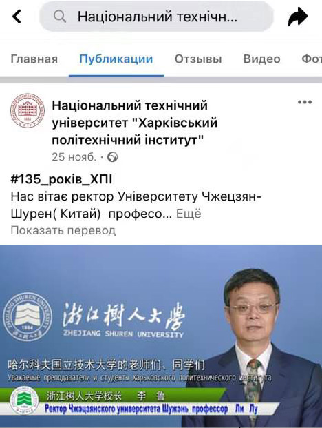 2020年11月25日乌克兰哈尔科夫国立技术大学召开建校135周年庆祝大会,李鲁校长向大会发出视频贺词,致以热烈的祝贺,向叶夫根·索科尔校长和该校全体师生员工致以诚挚的问候。