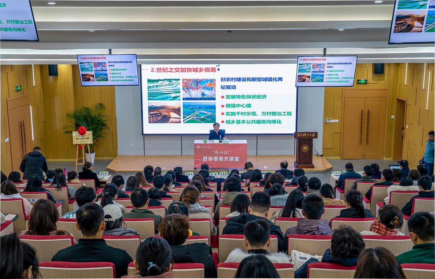 章清在总结讲话时指出,孙景淼副主席的报告数据详实、案例充实、言语平实、思考务实,对于我们进一步贯彻落实党的十九届五中全会精神具有重要的指导意义,对学校提升服务地方经济社会发展的能力,提高应用型人才培养的水平,实现“以学科建设为引领,推进学校提质升格”的总目标具有重要的指导意义。他希望,全校师生员工能够认真学习孙景淼副主席的报告。特别是青年大学生,要进一步认清自身肩负的历史使命,明确自己的人生追求,积极投身到乡村振兴事业中去,努力成长为对党和国家、对人民有所贡献的有用人才。