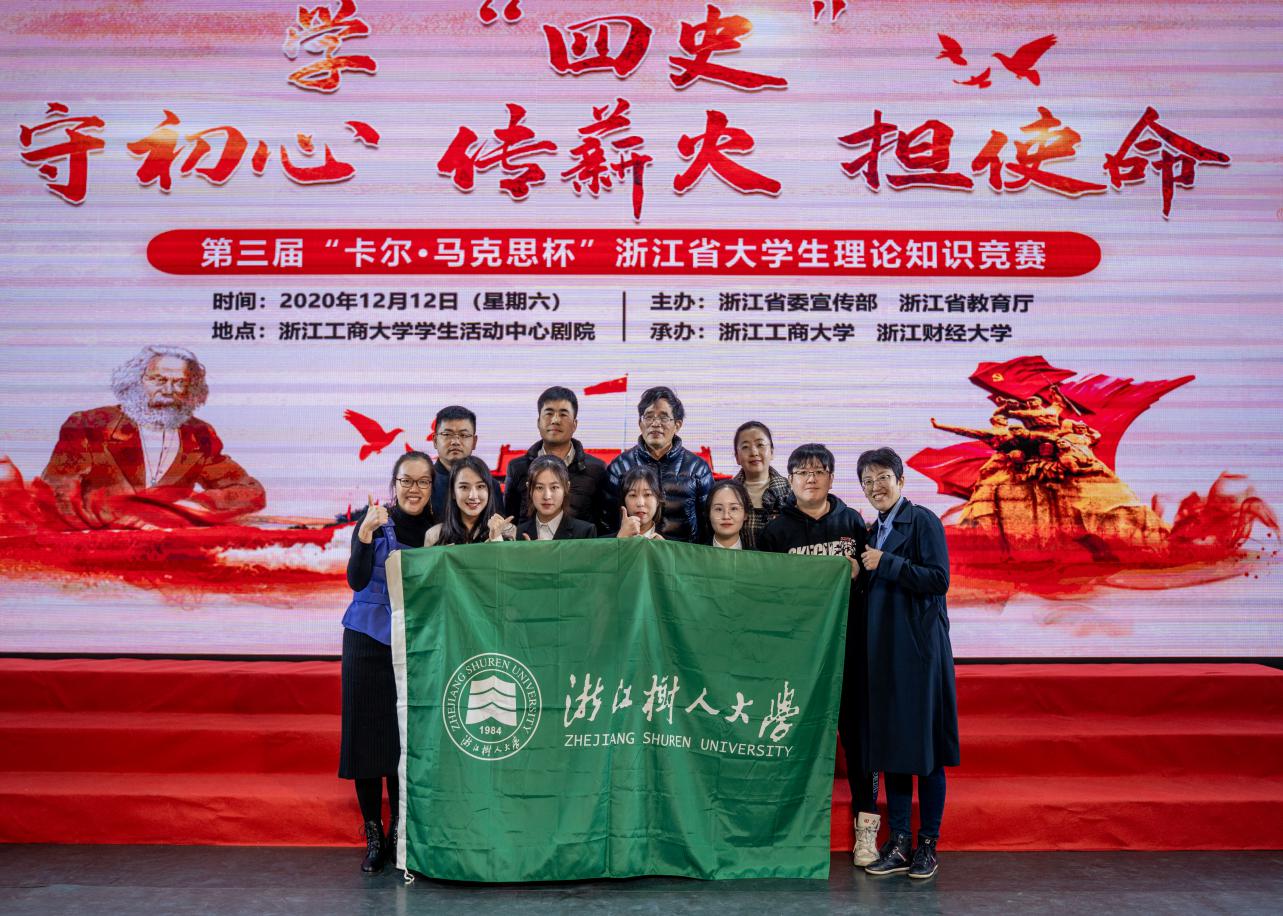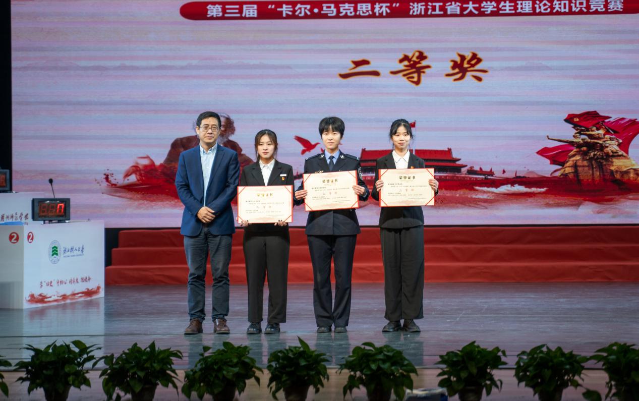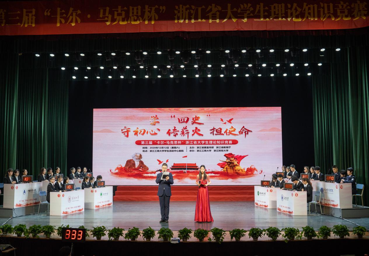 为贯彻落实党的第十九届五中全会精神,围绕“学四史、守初心、传薪火、担使命”主题,深入学习习近平总书记重要讲话精神,不断推进习近平新时代中国特色社会主义思想进教材、进课堂、进学生头脑。12月12日,第三届“卡尔•马克思杯”浙江省大学生理论知识竞赛决赛在浙江工商大学举行。通过全省107所高校初赛选拔,共有10所本科院校和10所高职院校入围决赛,经现场激烈角逐,我校参赛队荣获二等奖。