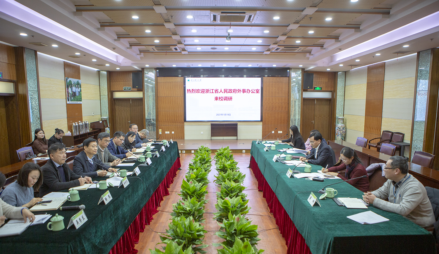 1月19日上午,浙江省人民政府外事办公室副主任顾建新,以及欧洲处、亚非处负责人等一行5人就我校国际化办学工作开展专题调研,重点开展对我校与白俄、日韩合作情况的调研。校长李鲁、副校长陈浚、校特聘顾问陈智,以及人外、信息、生环、医学院等学院院长、国交处负责人参加了调研座谈。