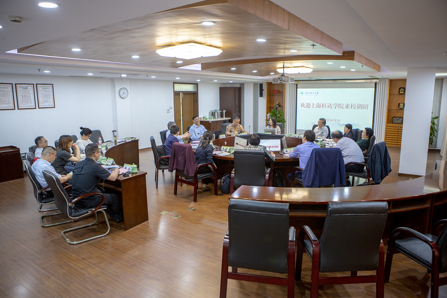 5月7日下午,上海杉达学院副校长娄斌超率该校规划与科技处、国际医学技术学院、胜祥商学院、管理学院、艺术设计与传媒学院、外语学院、信息科技与技术学院等一行9人来校调研,副校长叶时平热情接待了来访一行,学校对口单位相关负责人员参加了调研座谈会。