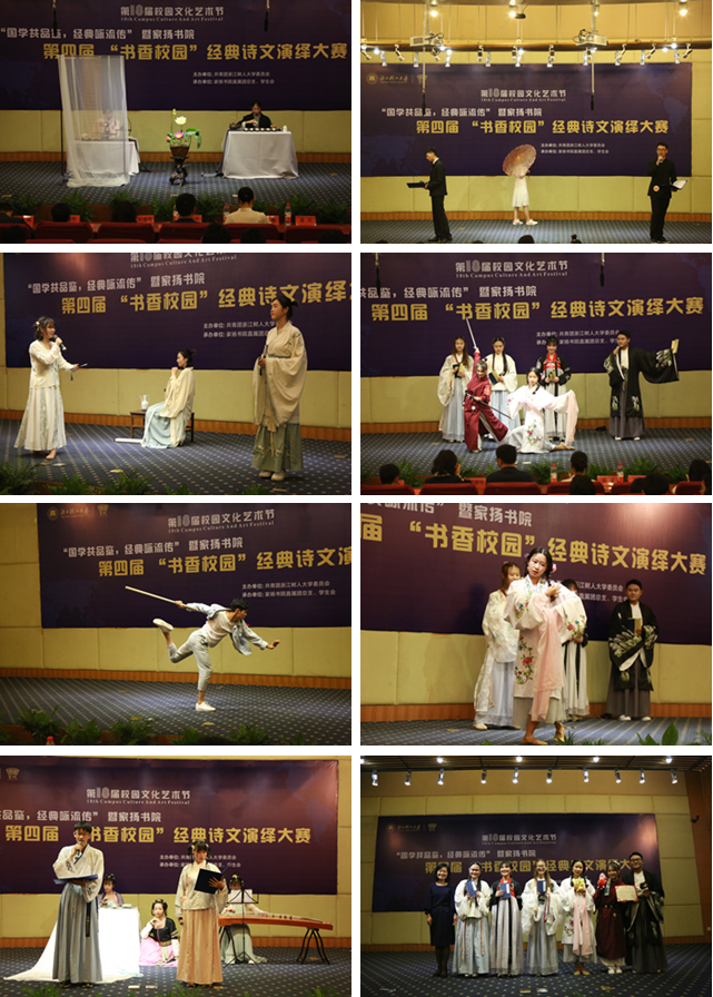 古人云,为文之道在于厚积而薄,秉承着“品读国学经典,演绎中化诗文,弘扬优秀文化”的活动宗旨,为扎实开展“书香校园”活动,营造浓郁的校园读书氛围,展现当代大学生的个性风采和精神面貌,培养审美情趣,增强人文底蕴,5月8日校第十八届文化艺术节之“国学共品鉴,经典咏流传”暨家扬书院第四届书香校园经典诗文演绎大赛在浙江树人大学报告厅盛大举行。本次比赛由校团委主办,家扬书院承办,担任本次大赛的评委老师有国际交流处处长、家扬书院院长胡建伟老师以及现代服务业学院茶文化老师袁薇。
