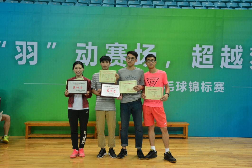 浙江树人大学(浙江树人学院)羽毛球队在经过紧张备战后,在戴光天老师执教下,本次比赛共报名参加了男子团体、女子团体、男子单打、男子双打、女子双打、混合双打共六个项目的角逐。在永不言弃、奋力拼搏的精神指引下,最终于39所本科高校中突出重围,取得团体总分全省第四名,刷新我校羽球历史最佳成绩,逐梦成功!其中具体名次如下: